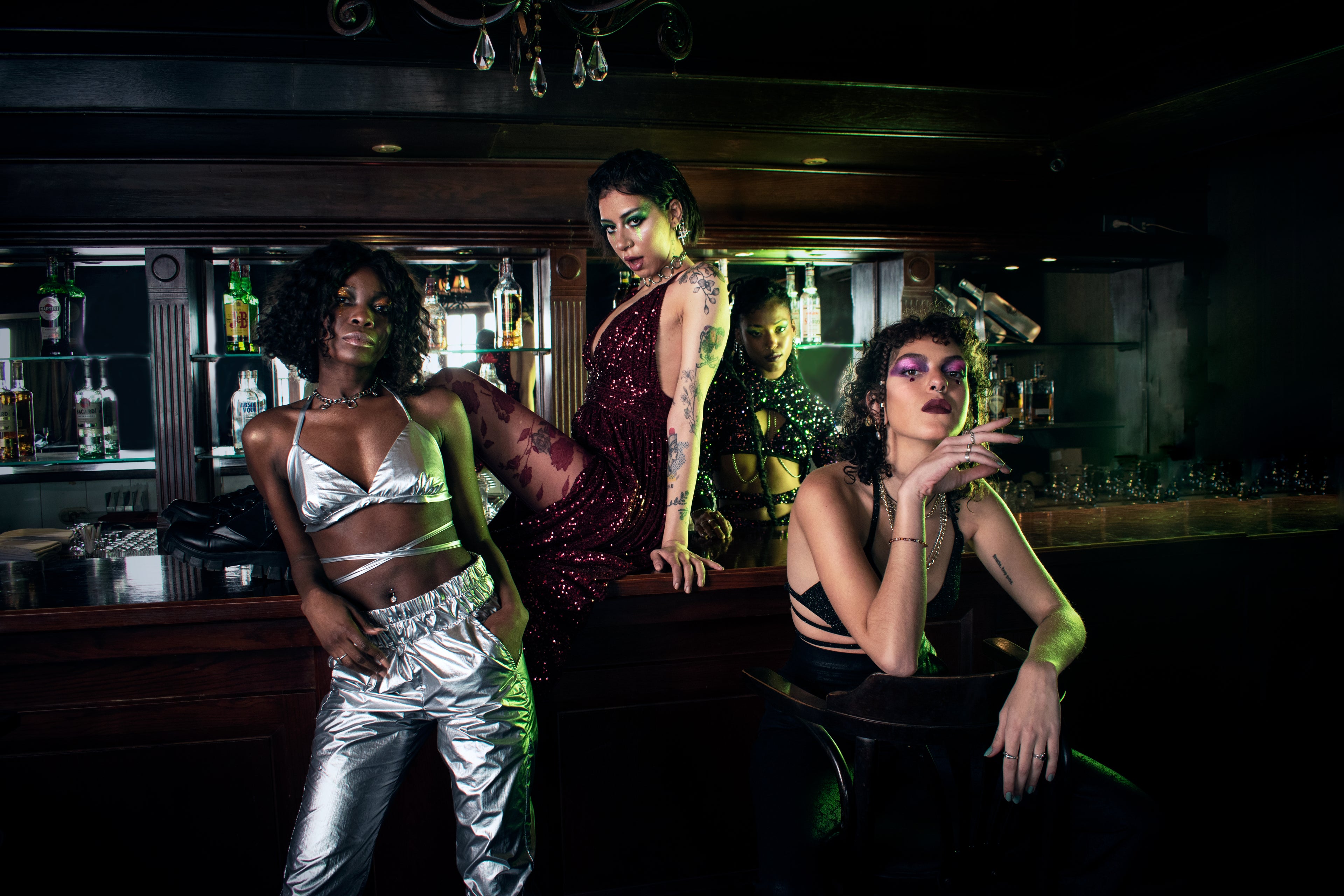 Emerald Glow Glitter Halter Crop Top